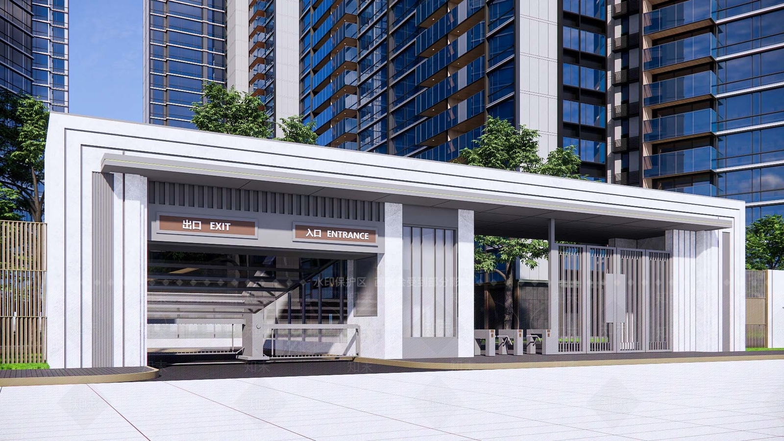 - 现代简约入口大门 住宅区入口 小区入口门楼 现代门楼