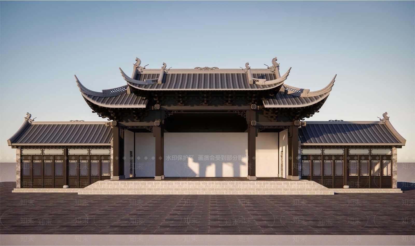 - 中式古建筑 中式商业街 中式古戏台 门头