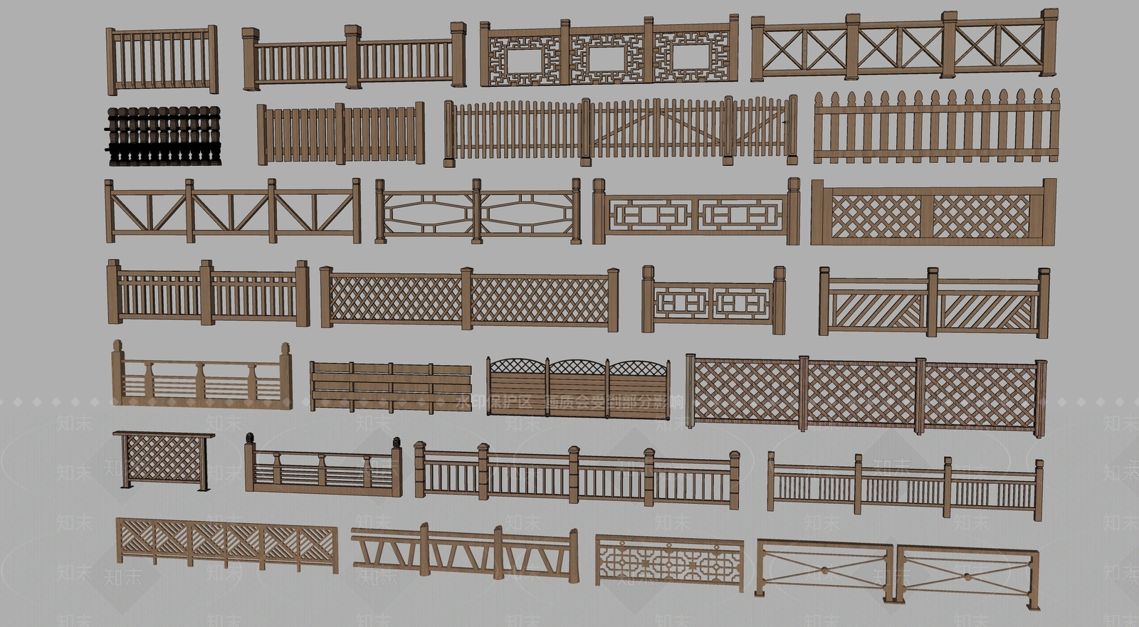 现代新中式其他小品 木栏杆 木质围栏 特色栏杆 木质栅栏 栏杆