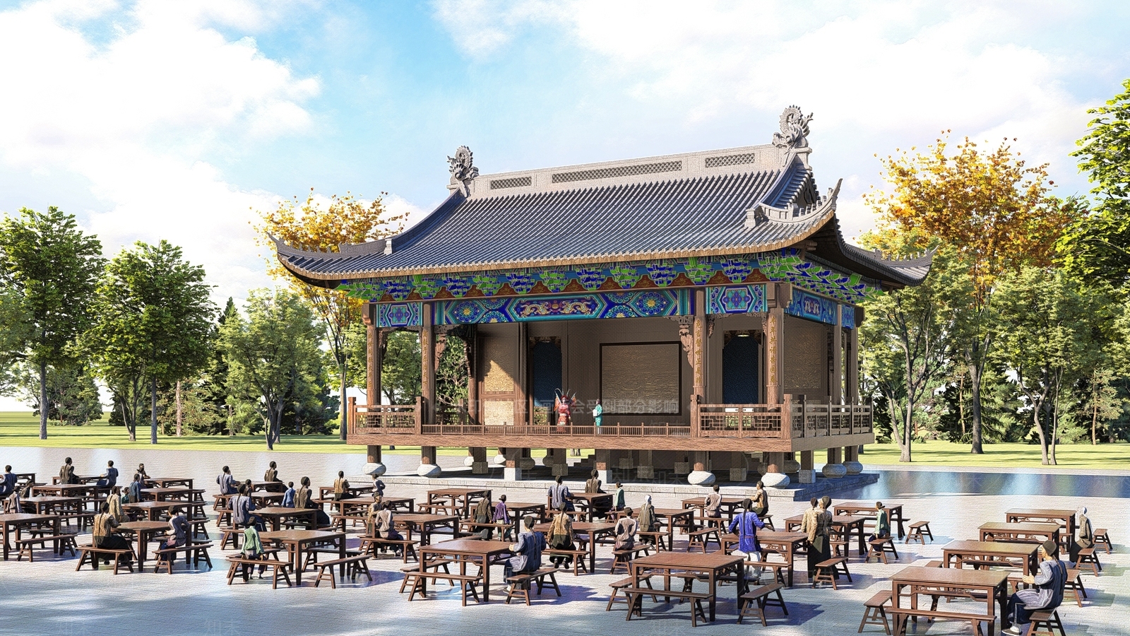 - 新中式中式小公建 中式戏台 乡村表演舞台 古街戏台 表演剧场 露天剧场 小公建