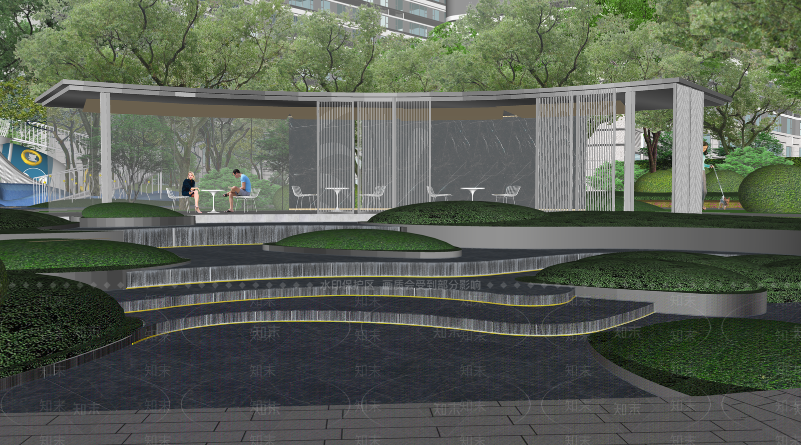 - 现代简约小区景观 住宅景观 住宅跌水景观 住宅水景
