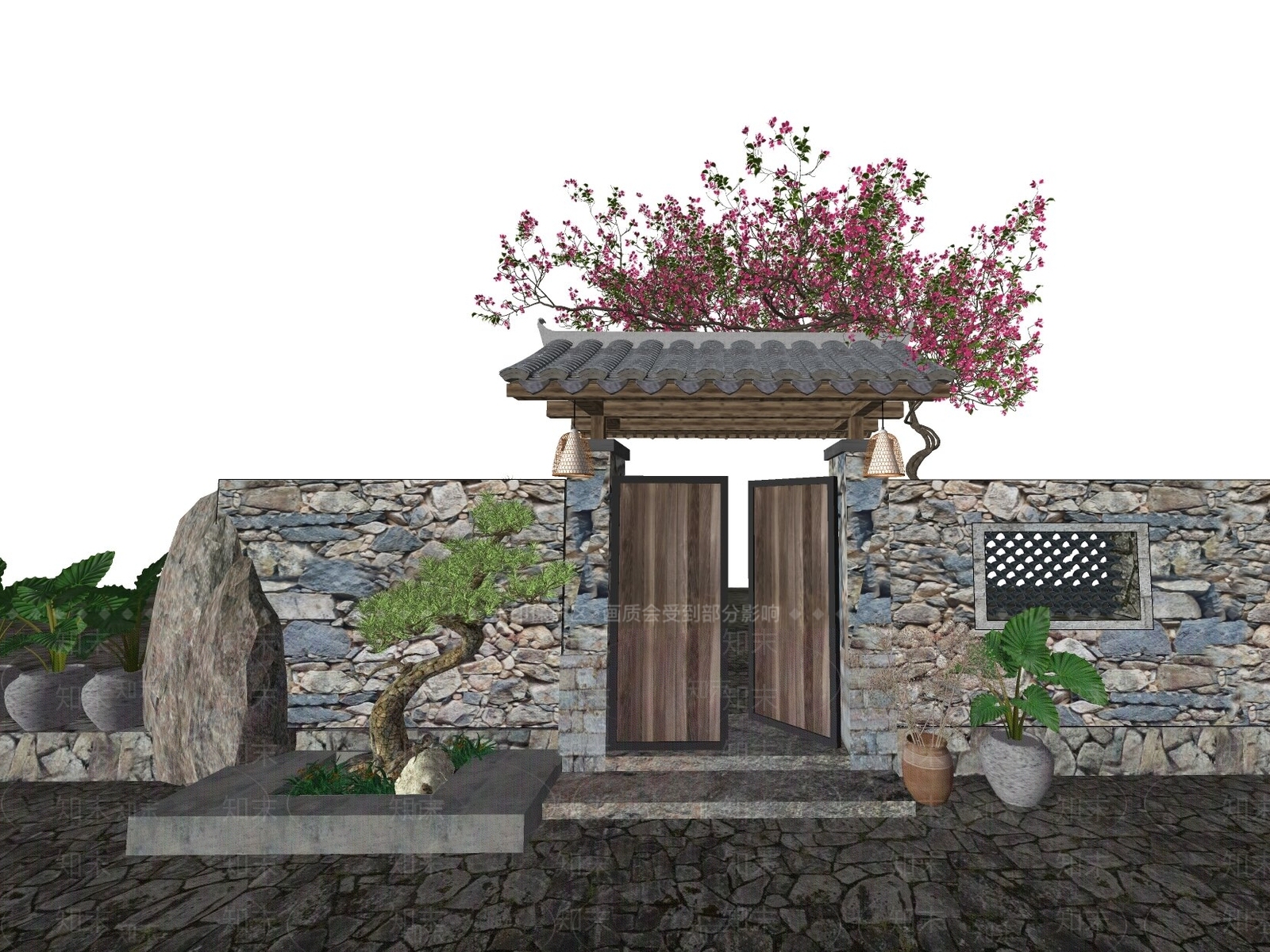 新中式现代古建筑 新中式民宿门头 三角梅爬藤 院门 民宿院门 优质门头