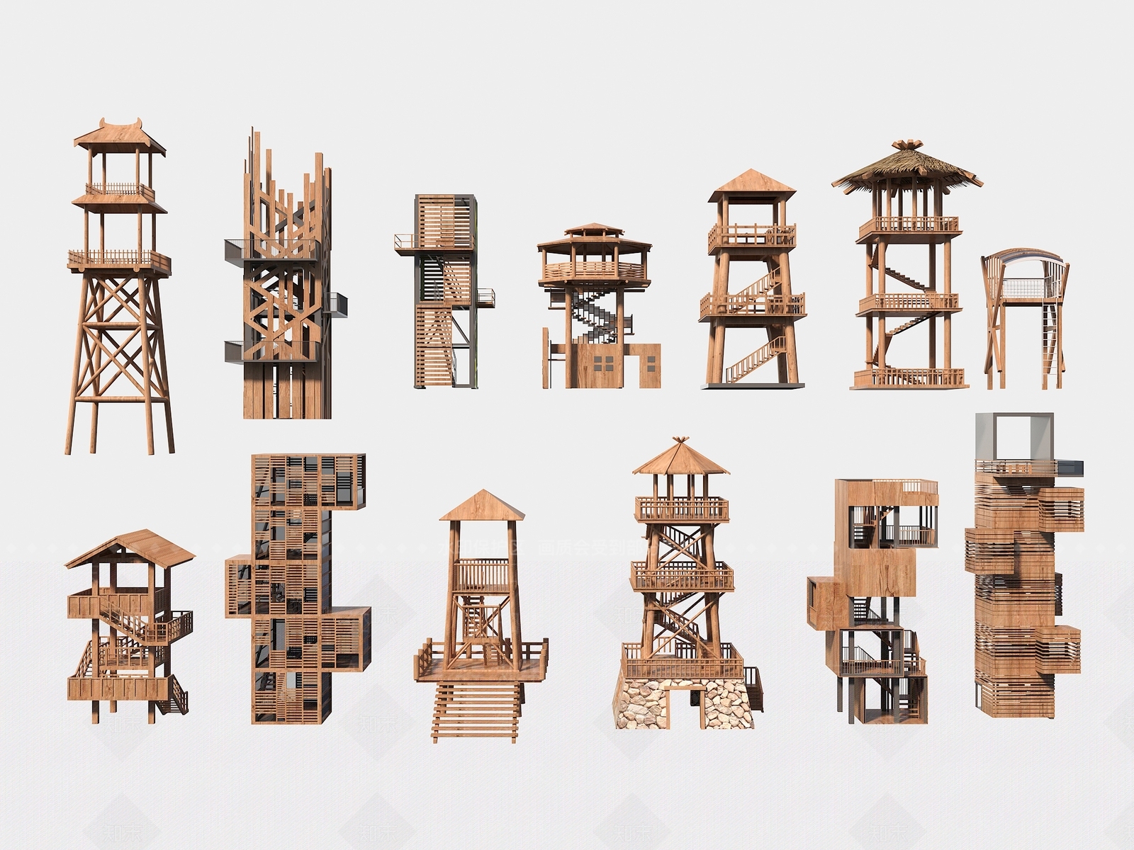 现代新中式亭子 景观亭子 观鸟亭 景观塔 观鸟塔