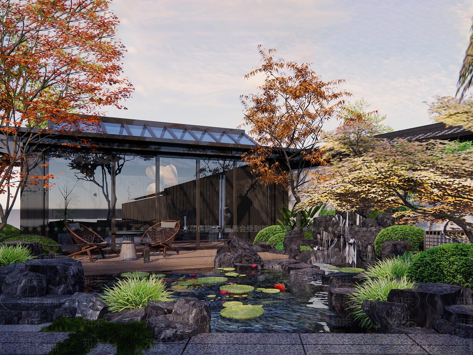 - 新中式别墅庭院 小院景观 庭院 民宿小院景观 院子