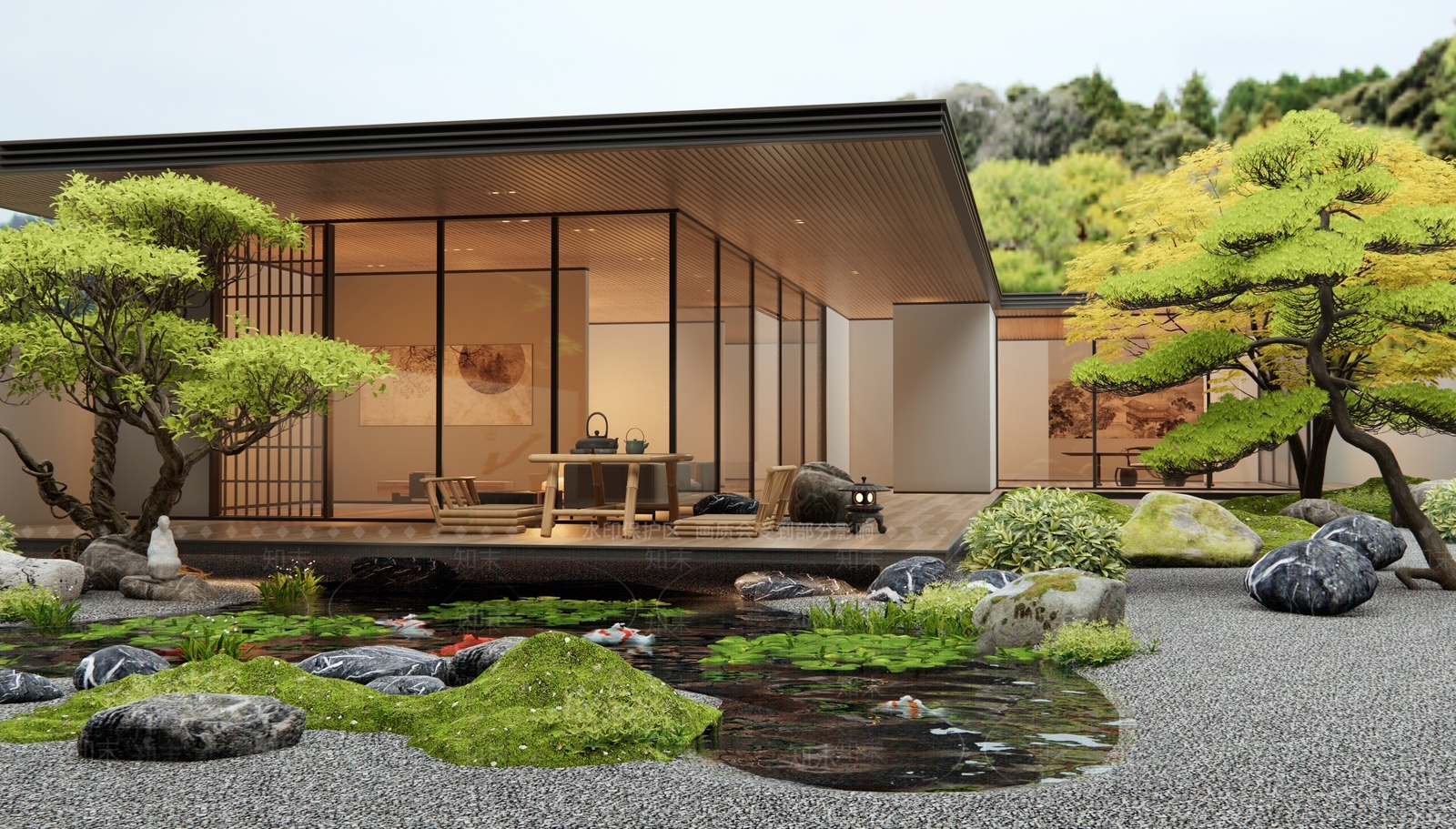- 日式禅意别墅庭院 庭院 枯山水 微景观 石头