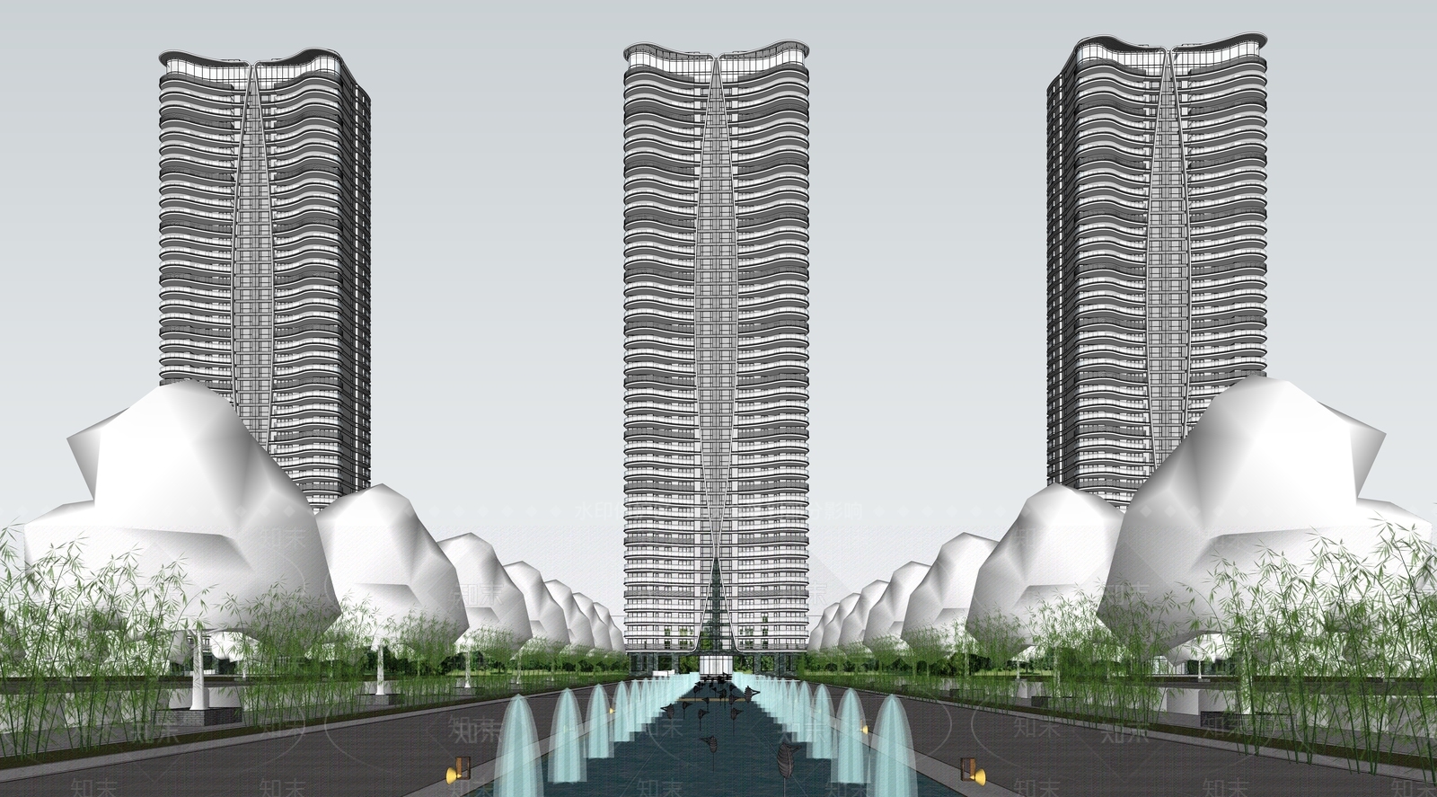 现代高层住宅 超高层流线型住宅