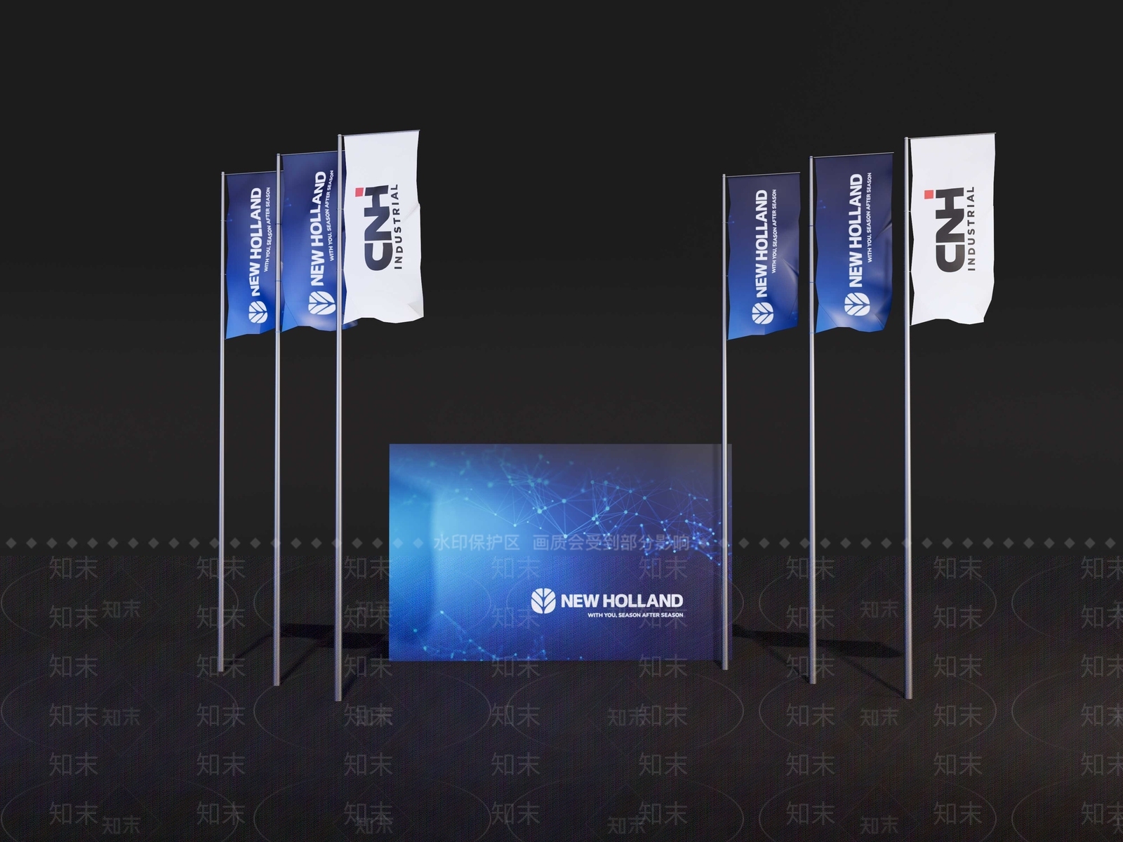 - 现代旗杆旗台 道旗 背景板 路演舞台