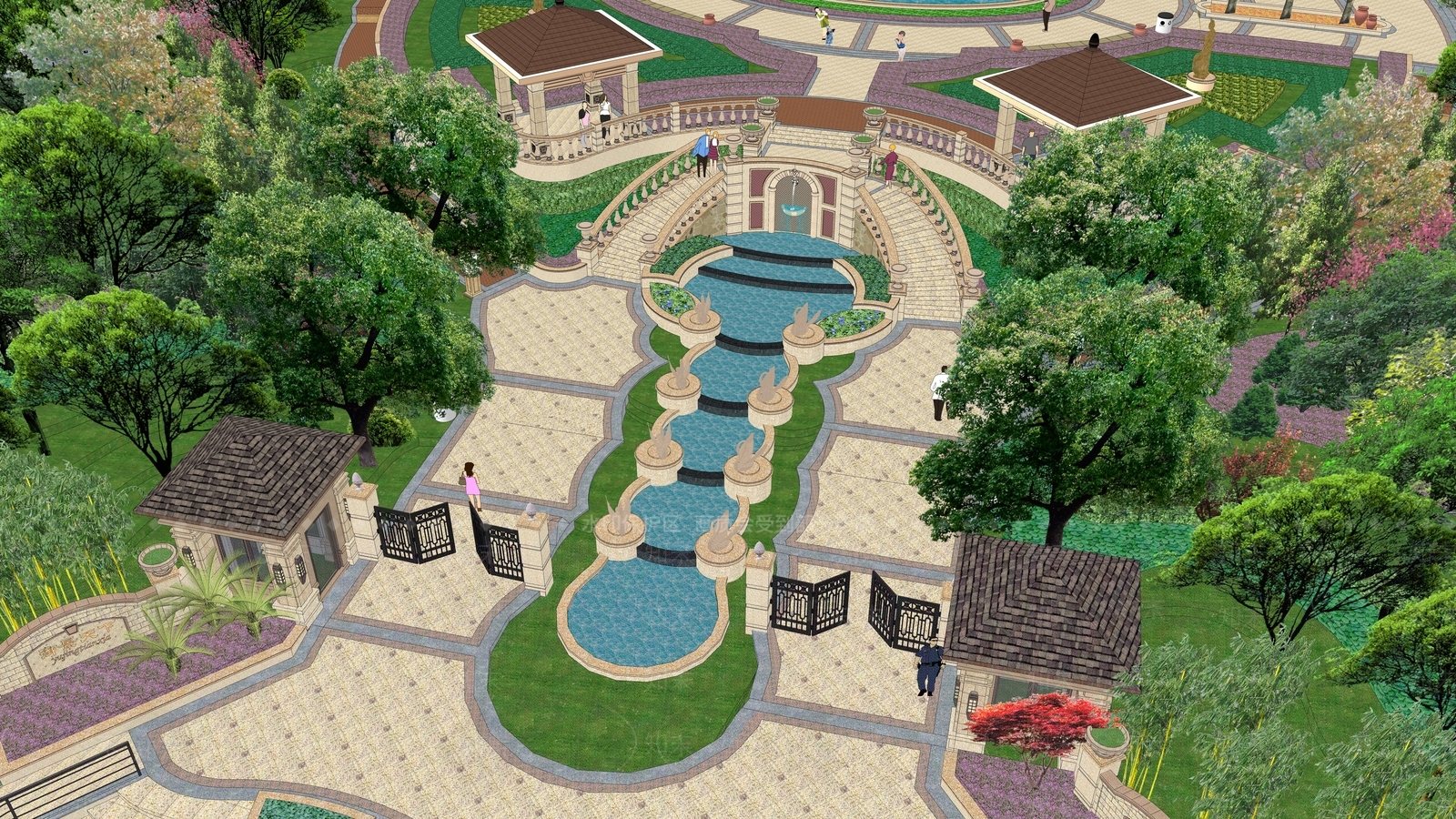 欧式复古小区景观 欧式小区景观 欧式水景 欧式住宅