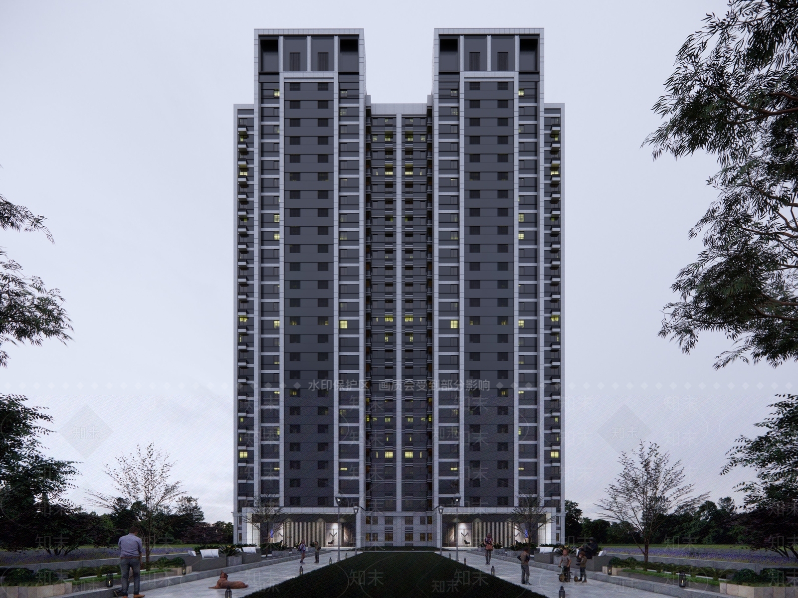- 现代简约高层住宅 现代风格四代宅 现代风格高层住宅 四代宅 横向线条高层造型 轻奢住宅