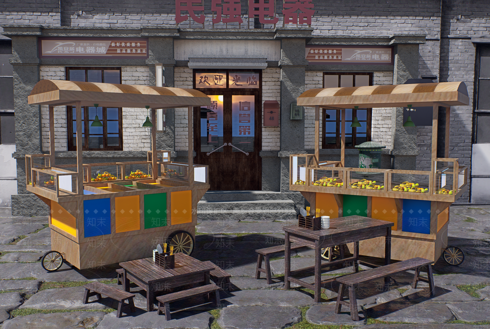 现代新中式影视 民国风千禧年 小吃车摊位 老旧餐车推车 怀旧复古八十年代 人间烟火气氛围