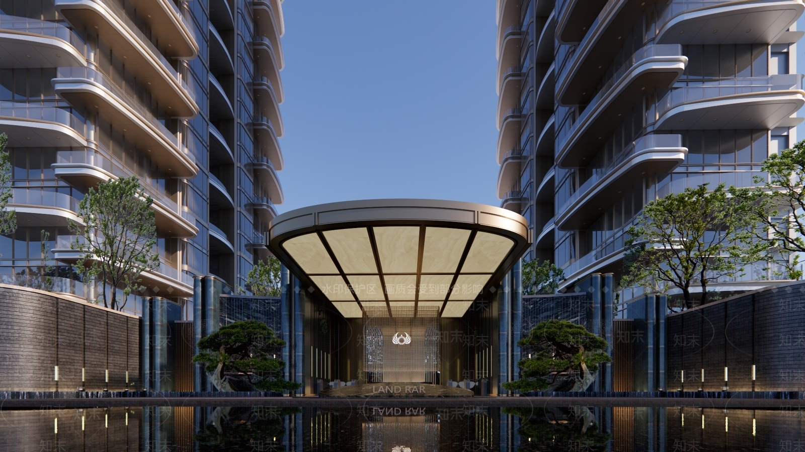 - 现代轻奢小区景观 入口 高差 会客厅 水景 台阶