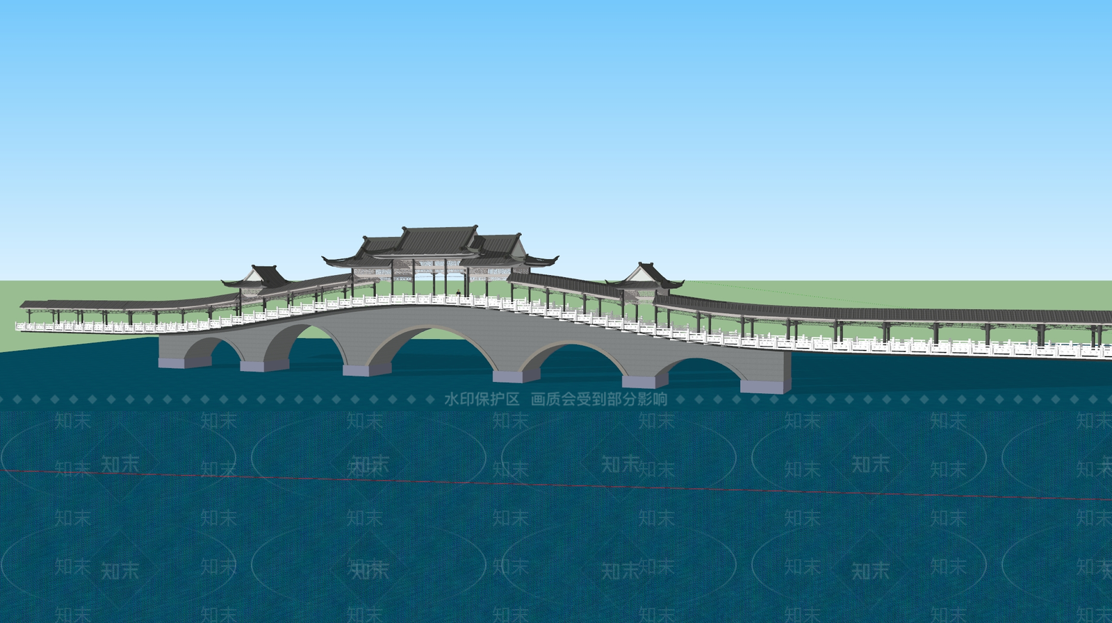 中式复古古建筑 水上廊桥 中式建筑 中式廊桥 六孔桥 水上连廊