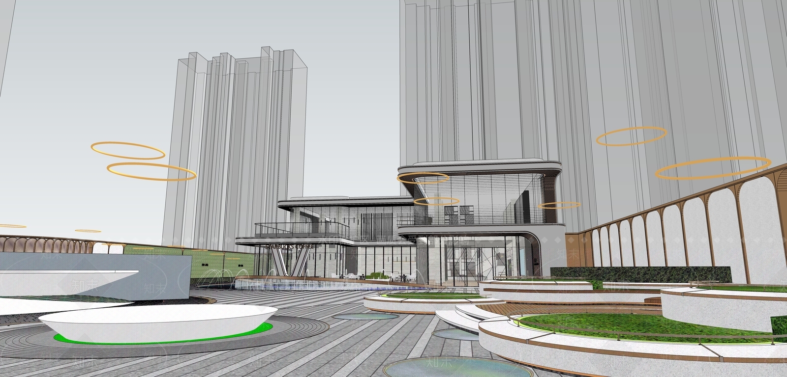 - 现代小区景观 展示区广场入口 连廊 架空层 会客室