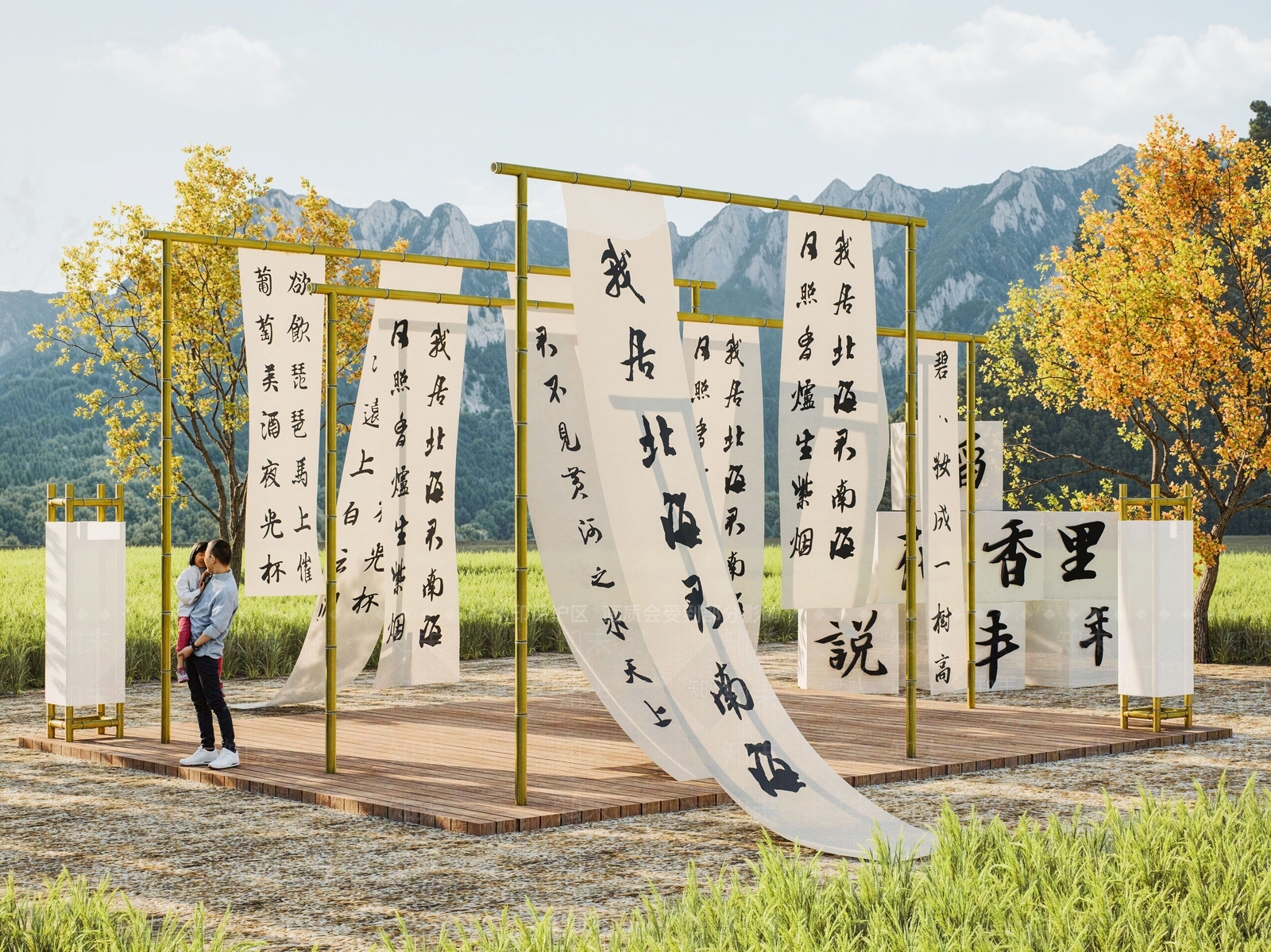 新中式亭子 竹构书法飘带亭 稻田网红驿站打卡