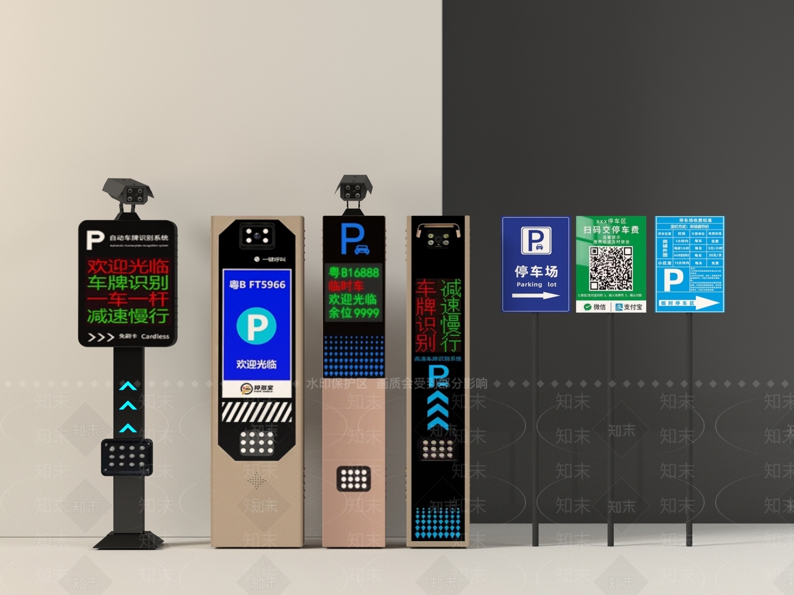- 轻奢现代标识标牌 指示牌 标识 路牌 停车场 三岔口