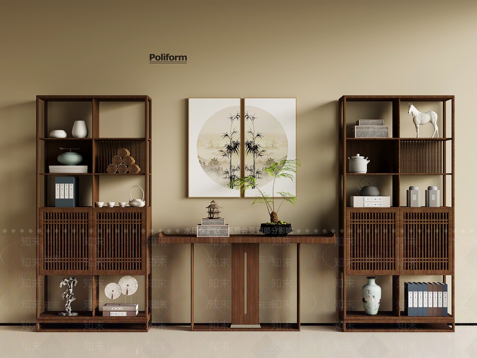 - 新中式博古架 储物柜 博古架 书柜 置物架