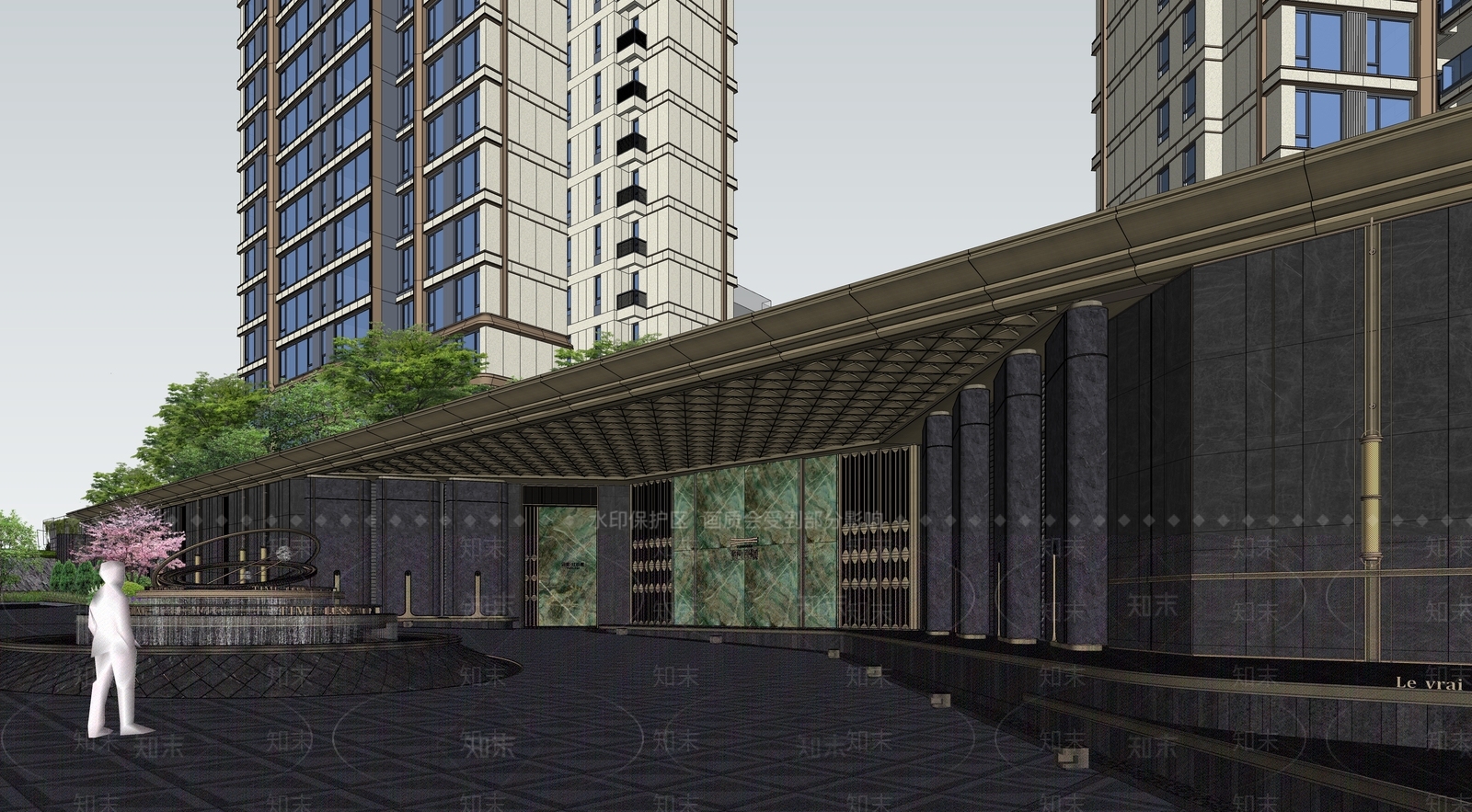 - 新中式小区建筑 现代展示区 现代沿街商业 现代大门景观 多层商业