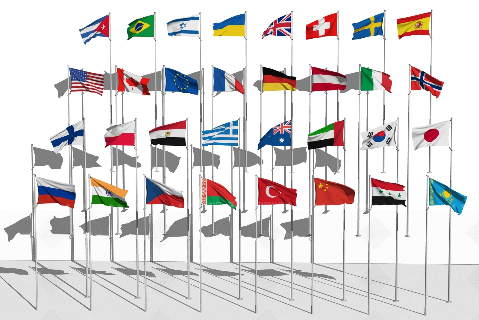 - 现代旗杆旗台 各国国旗组合 国旗旗杆组合