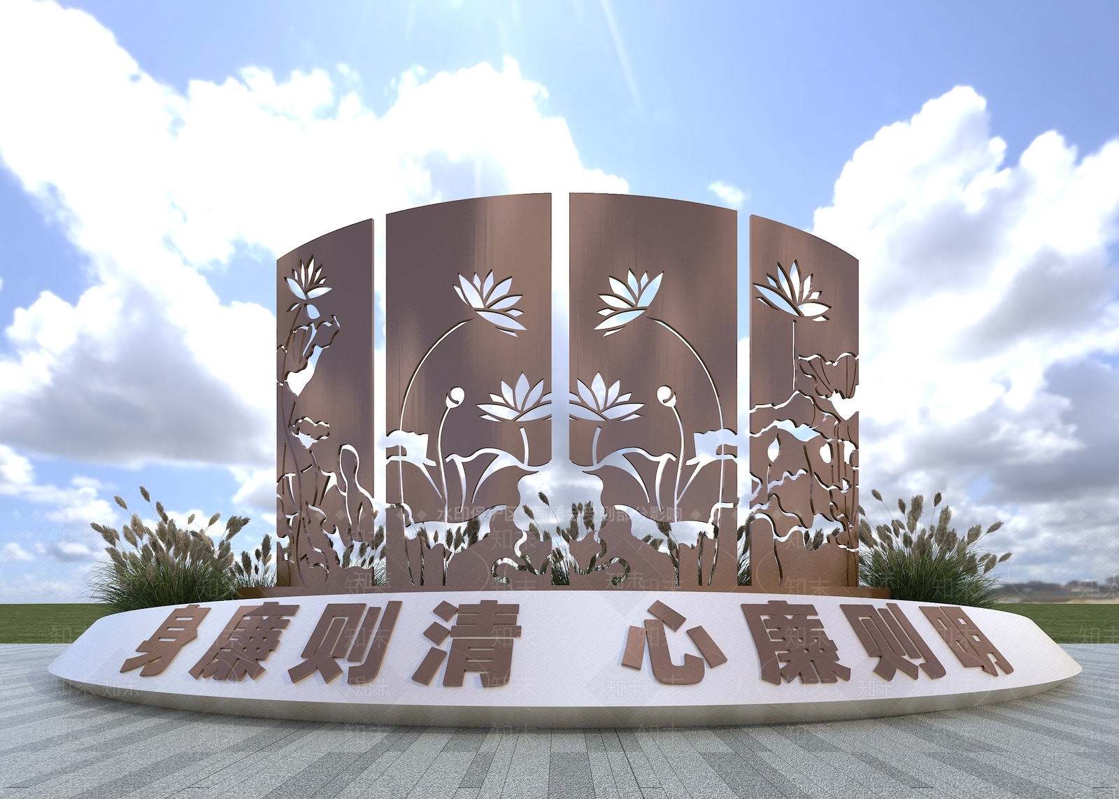 新中式现代雕塑 新中式 城市雕塑 镂空荷花 户外廉政文化雕塑