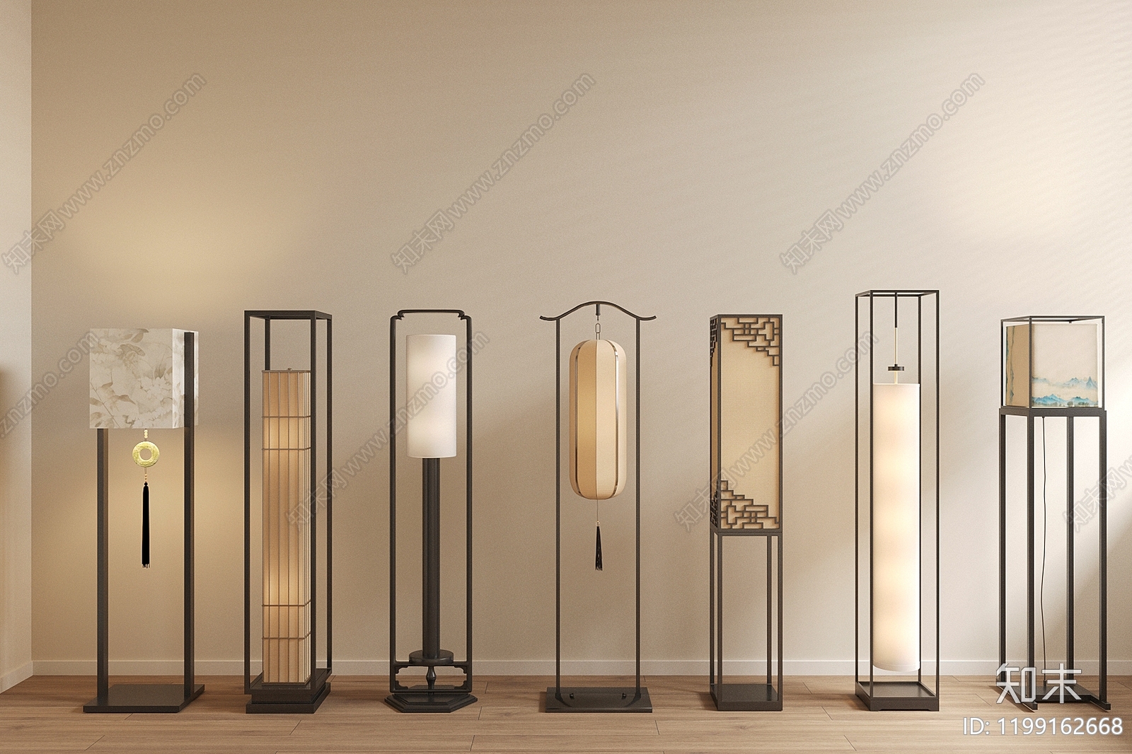 新中式灯具组合 灯具组合 灯饰灯具 落地灯 新中式灯具