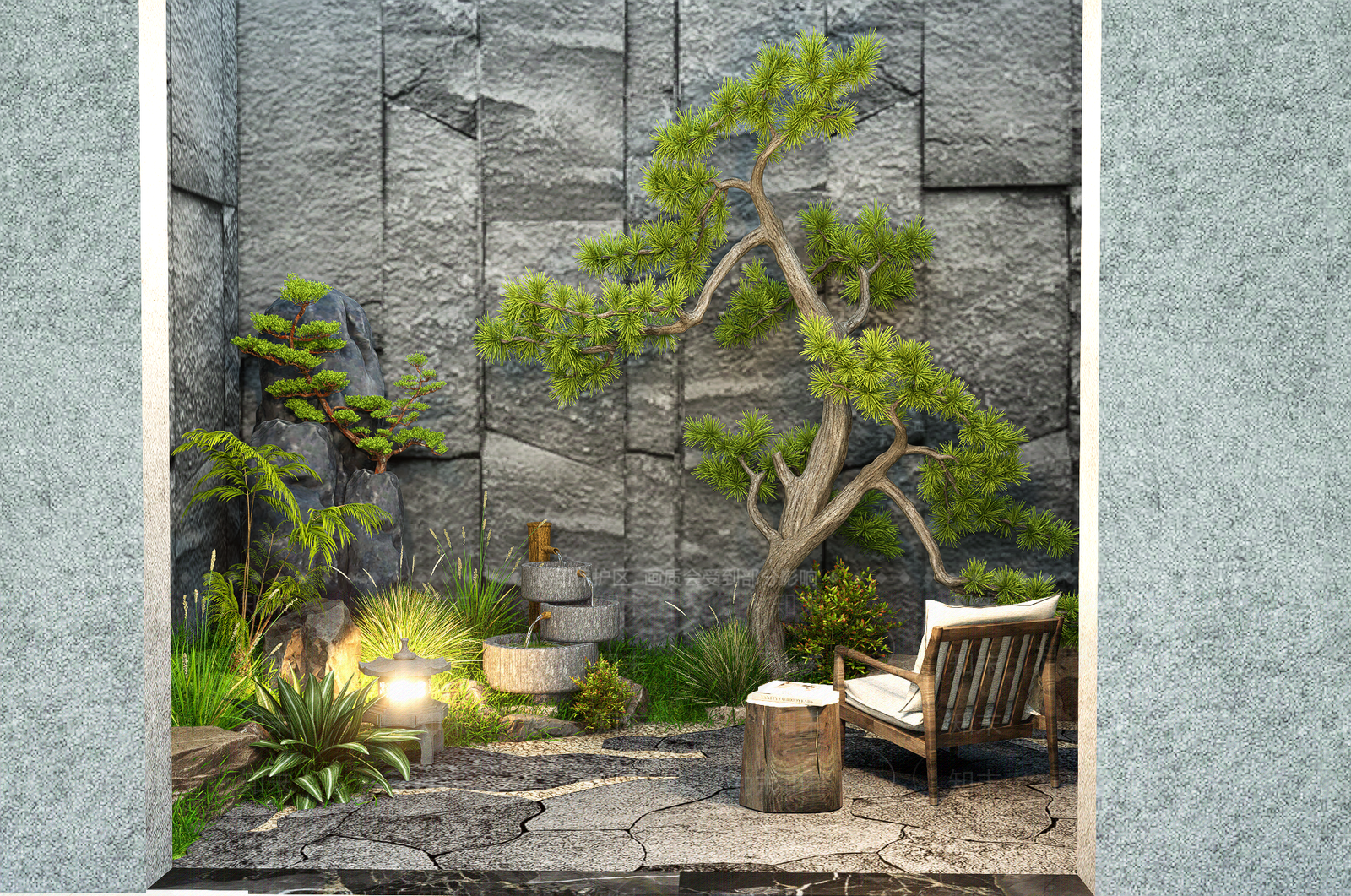 - 新中式室内景观 室内景观造景 地下室 居家庭院 景观