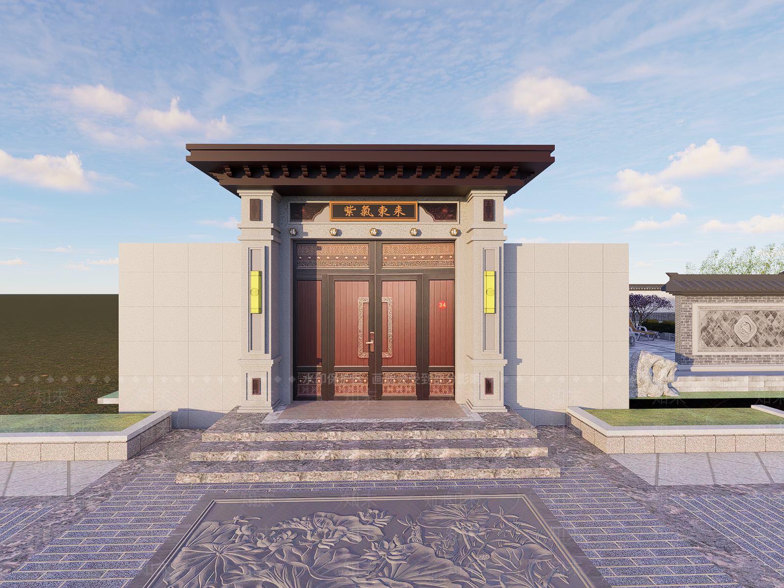 - 新中式入口大门 庭院大门 景观大门