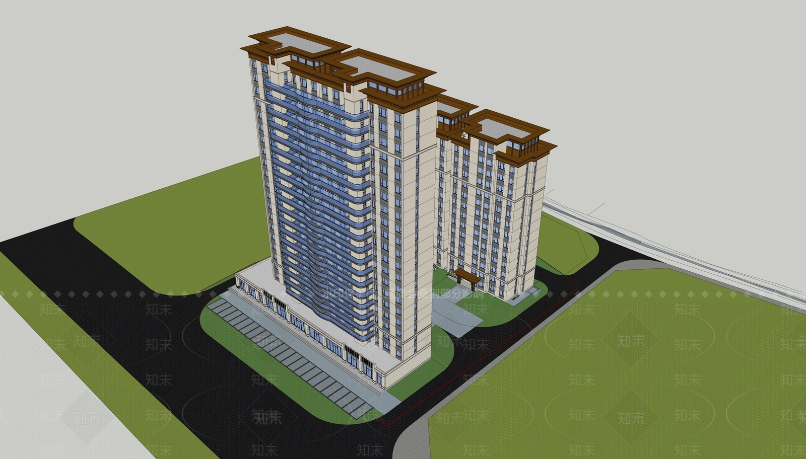 - 现代简约高层住宅 现代高档住宅楼 高层住宅 高品质住宅 轻奢金属感住宅 流线曲面