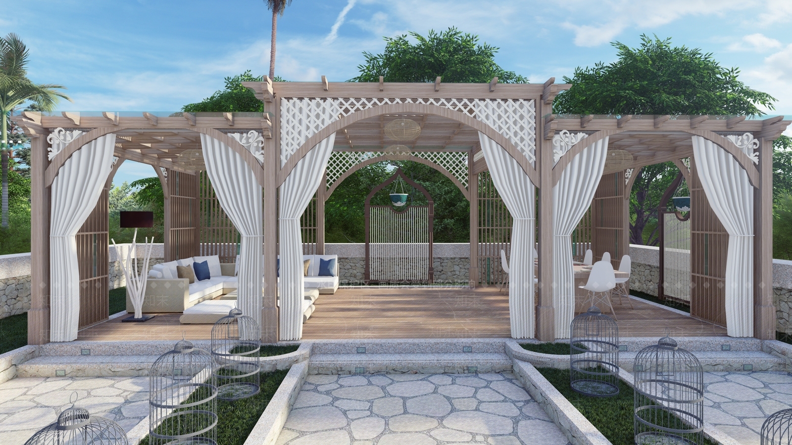 - 别墅阳光房 新中式凉亭 别墅小院