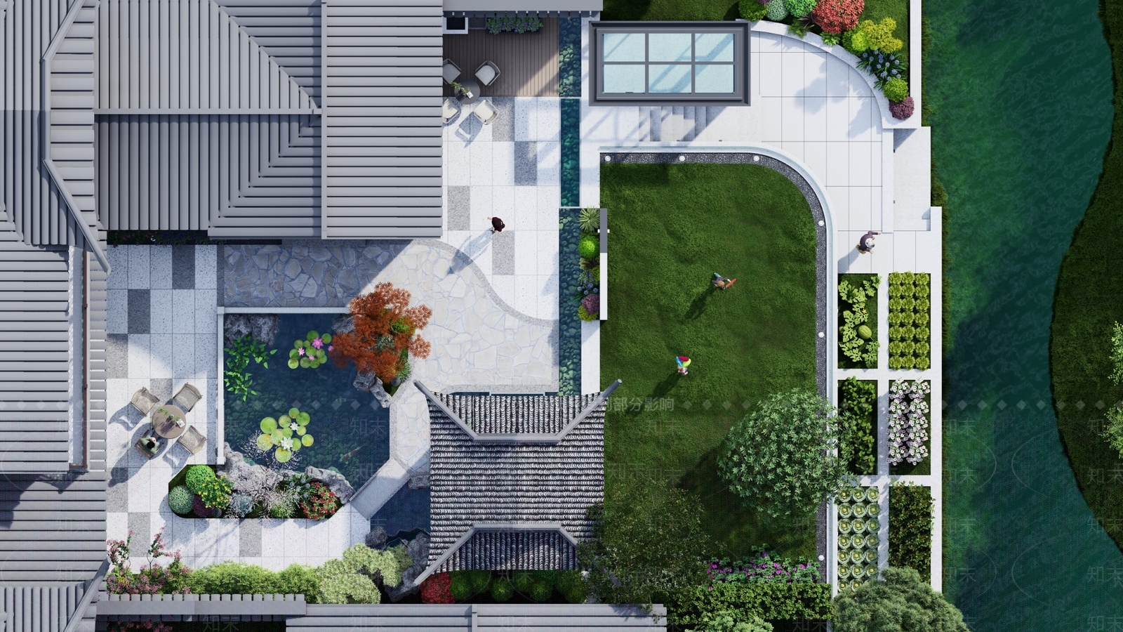- 新中式别墅庭院 庭院景观 别墅花园 别墅庭院