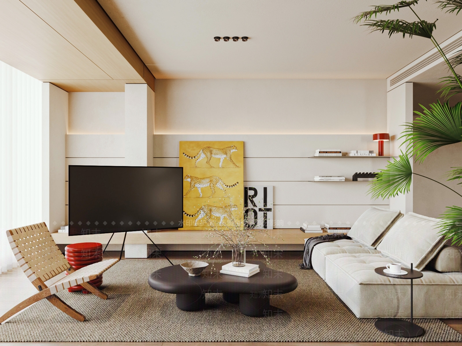 现代侘寂家居客厅 包豪斯 原木 奶油 中古 沙发茶几组合