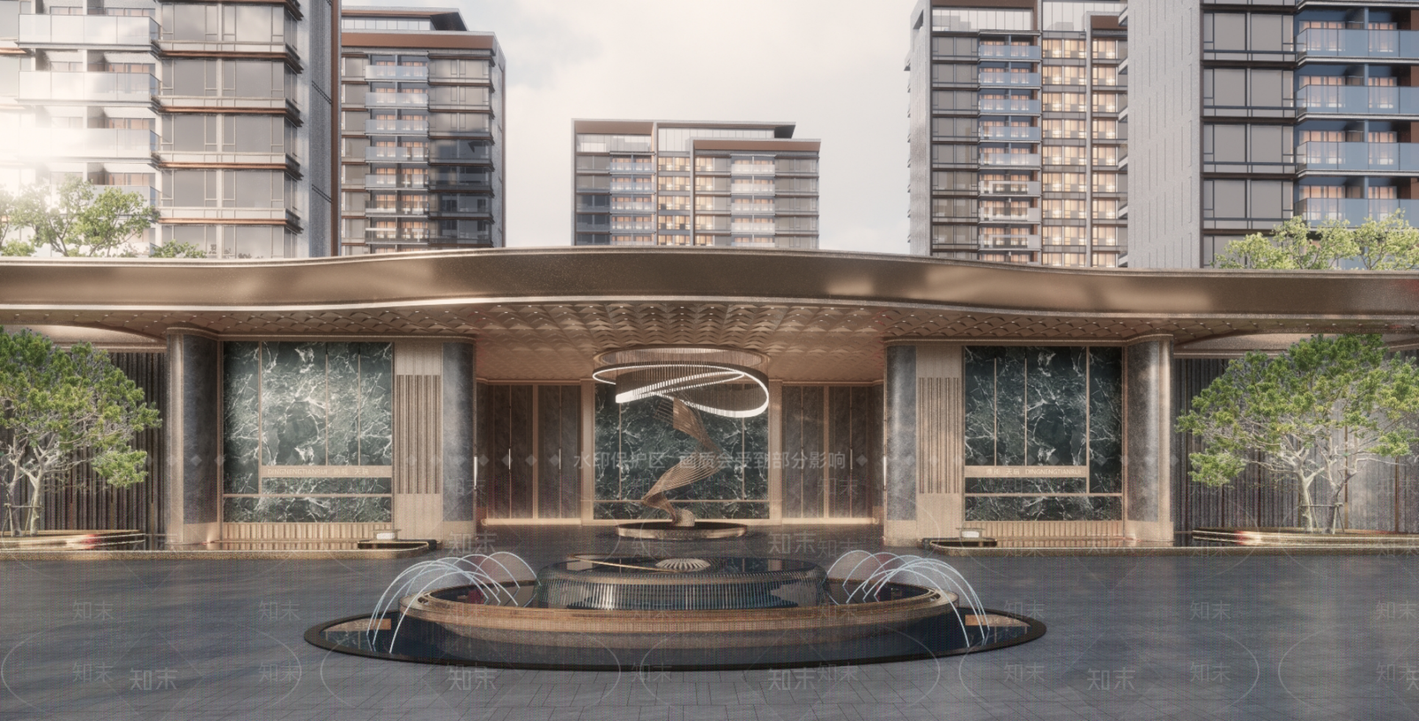 轻奢商业综合体景观 豪宅示范区景观 小区中庭水院景观 连廊景观 核心中庭景观