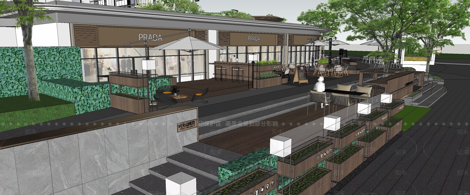 - 现代简约商业综合体景观 商业街景观 对景挡墙 街角广场