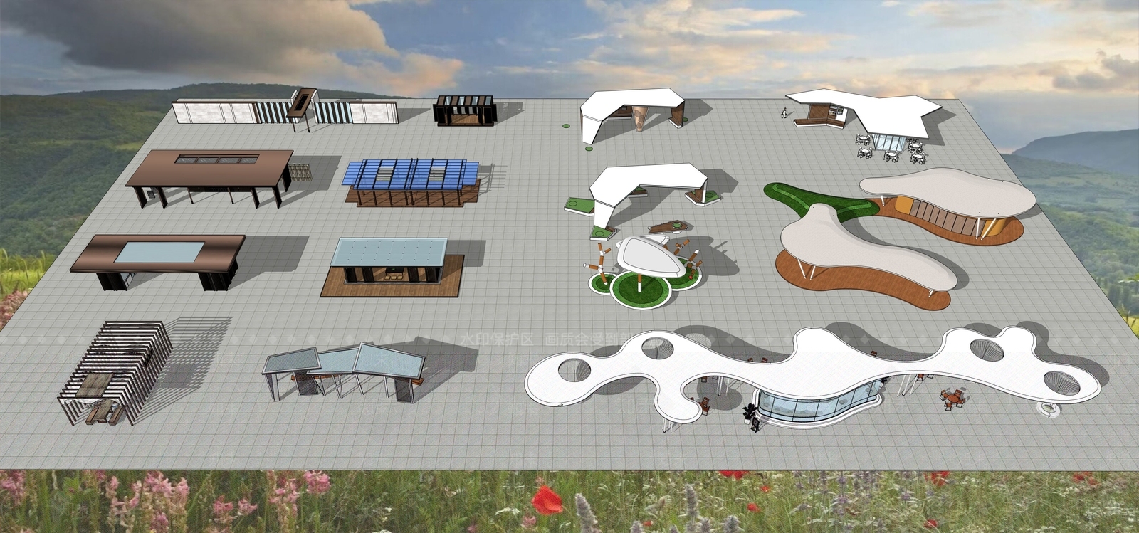 - 参数化设计廊架 现代景观构筑物 景观构架 景观廊架 景观装置
