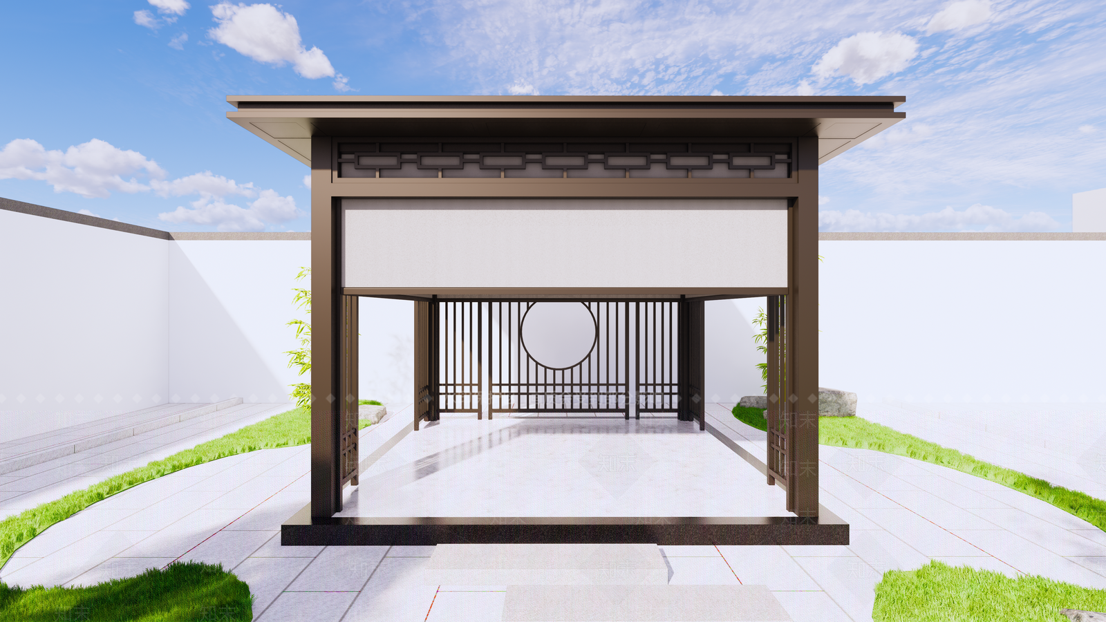 - 新中式入口大门 中式古建门头 建筑构件 牌楼 牌坊 庭院门
