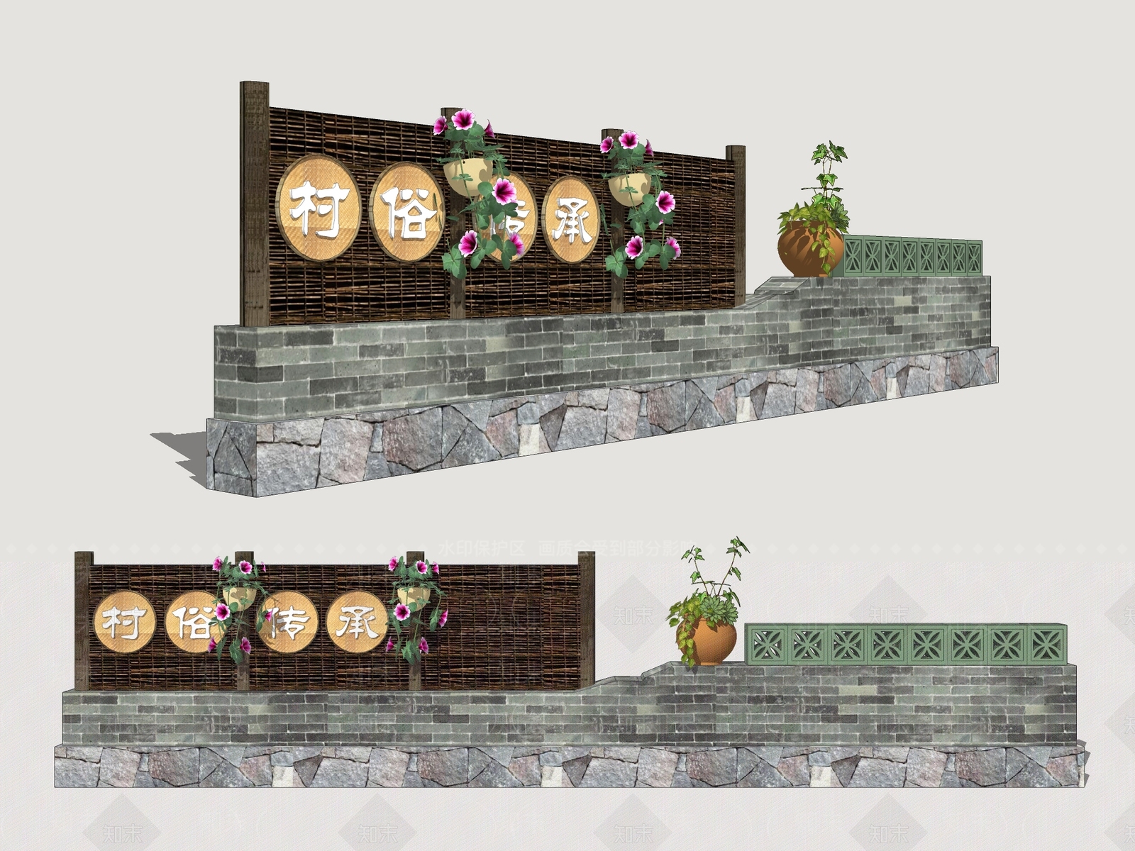 - 新中式景观景墙 新中式乡村景墙 院墙 民俗景墙 砖墙 景墙围墙