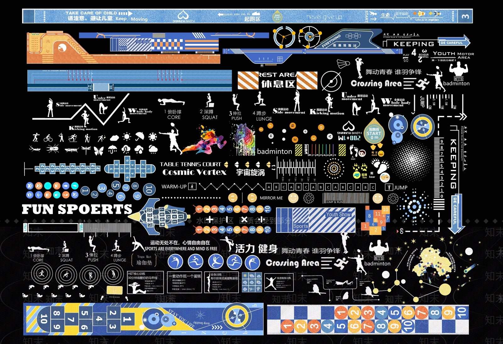 现代标识标牌 运动场地标识标牌 创意塑胶跑道设计 儿童乐园卡通图案 户外健身场地铺装 运动人物标识图案