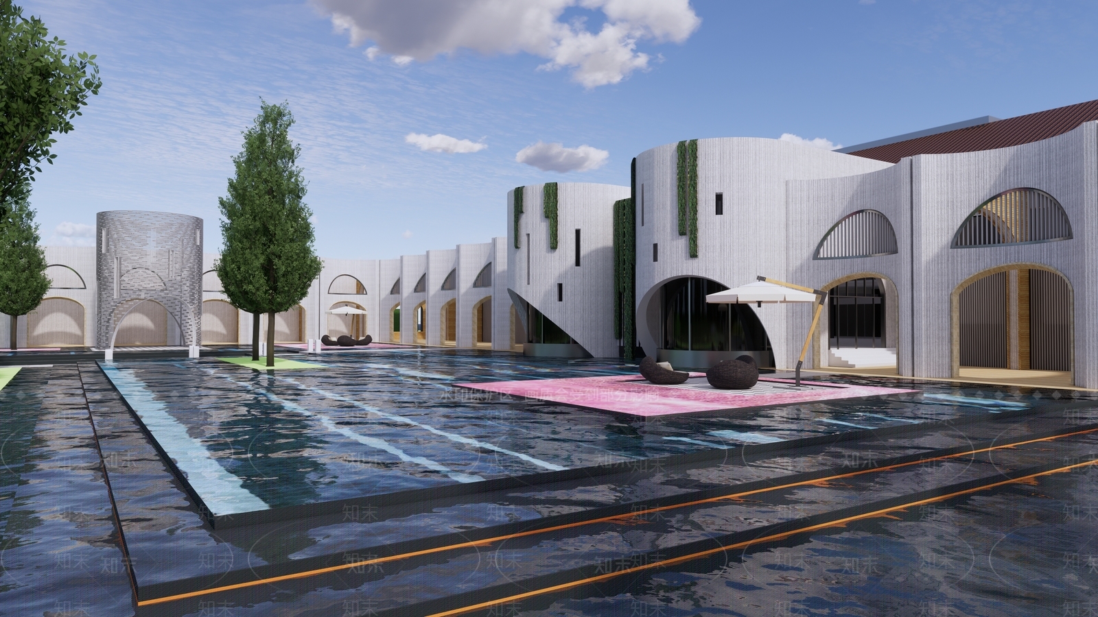 - 新中式景观小区景观 现代轻奢下沉庭院 示范区水院廊架 叠级水景高差景观 海派大区下沉卡座 特色花基对景景墙
