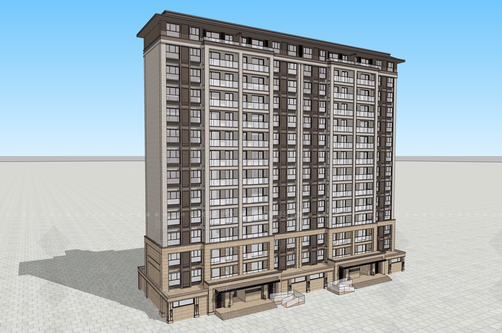 - 现代简约高层住宅 高层T4住宅建筑 精工立面 平顶