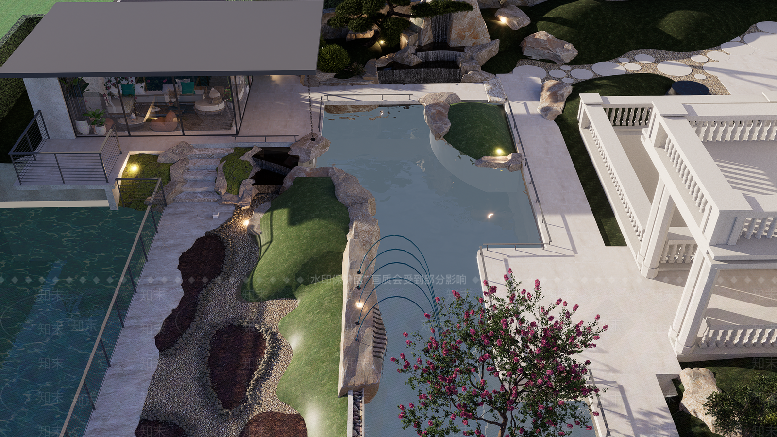 - 新中式别墅庭院 庭院景观 别墅花园 别墅庭院