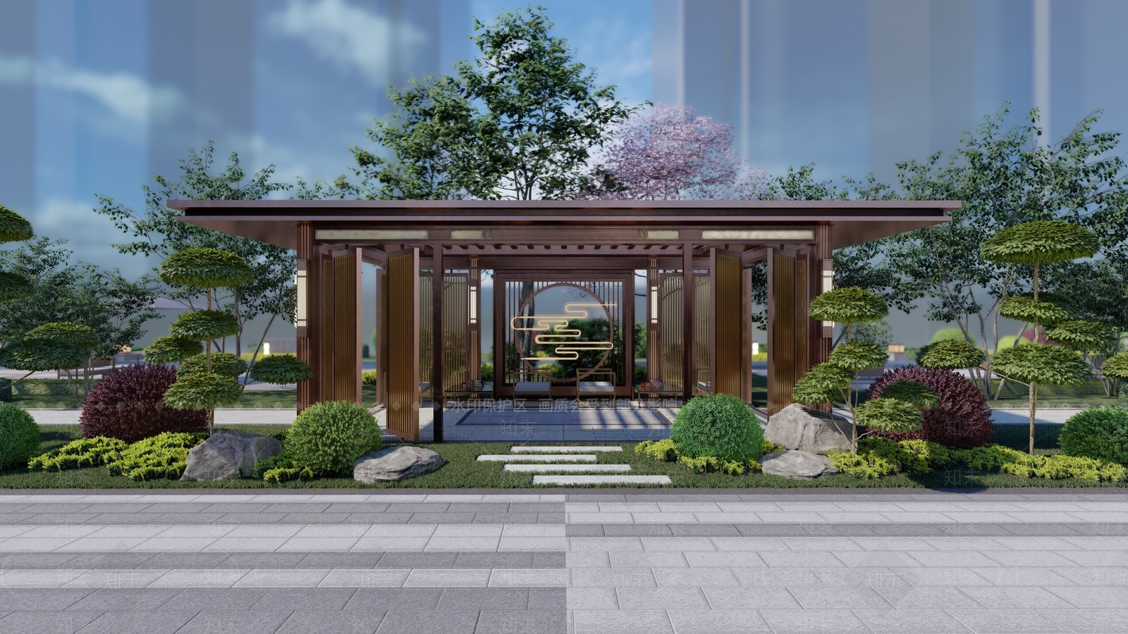 - 新中式亭子 现代新中式四方亭 月洞沙发茶座