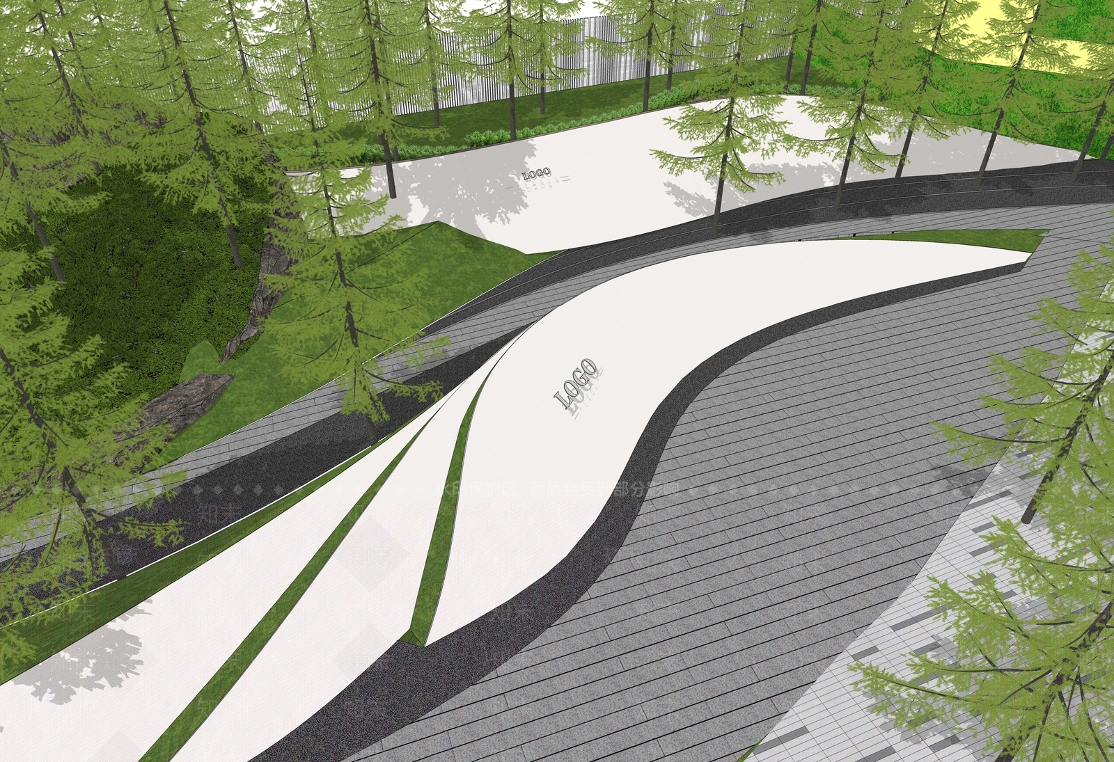 现代景墙 现代曲线异形景墙 公园入口标识景墙 街头绿地口袋公园 曲面坡道层叠景墙 LOGO标识景墙