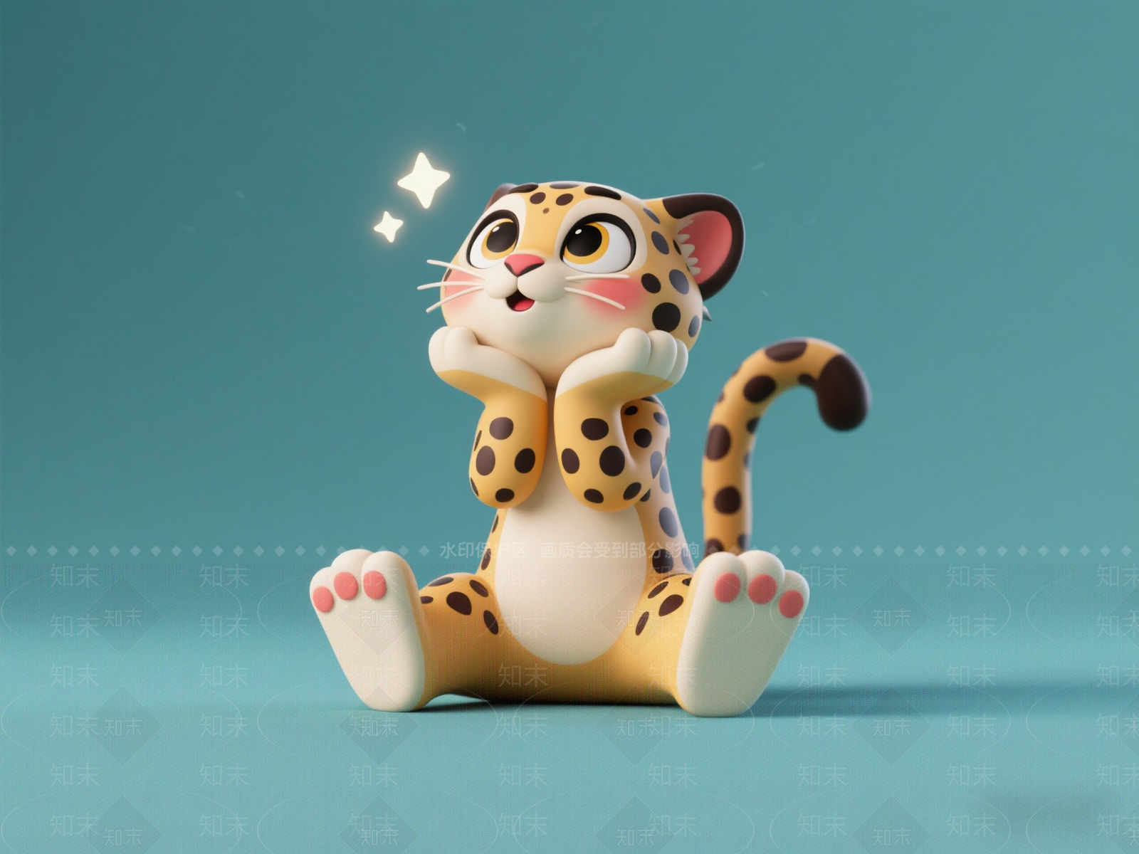 现代雕塑 可爱豹子雕塑 AI渲染效果图 动物艺术装置 商业美陈 手办装饰品