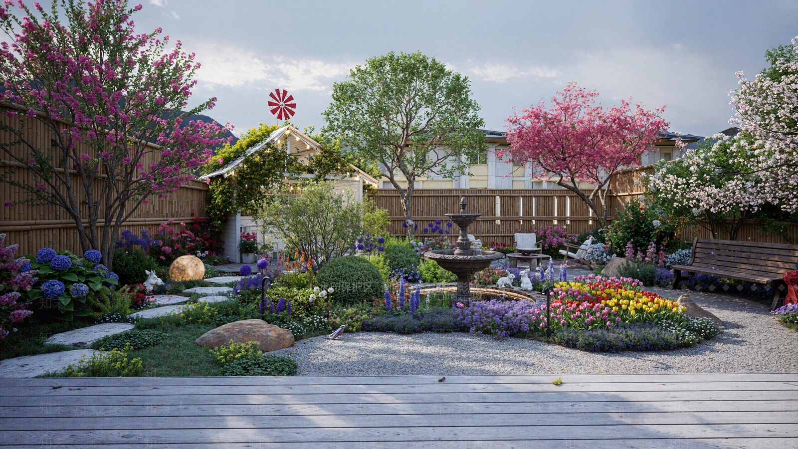- 新中式别墅庭院 私人庭院 小菜园 小花园 美丽庭院 一楼庭院