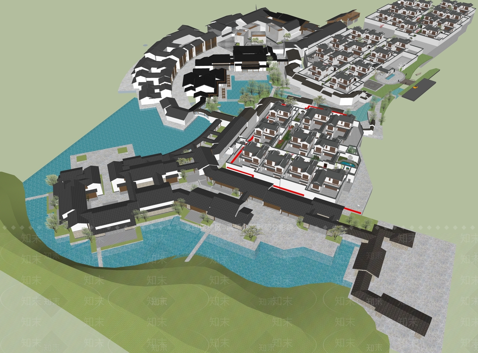 新中式中式商业街 商业小镇 文旅小镇 中式别墅 水街 江南水乡