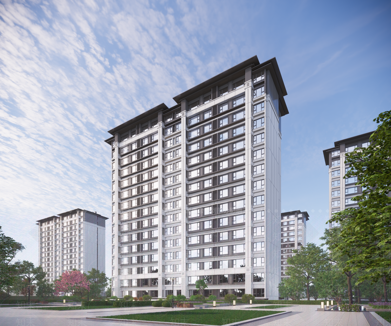 新中式小区建筑 高层住宅 小高层住宅 住宅建筑