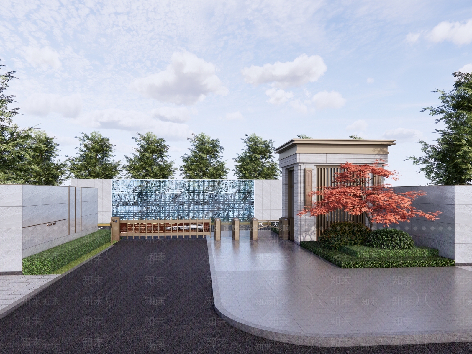现代入口大门 公园入口大门 次入口 岗亭车挡 对景景墙