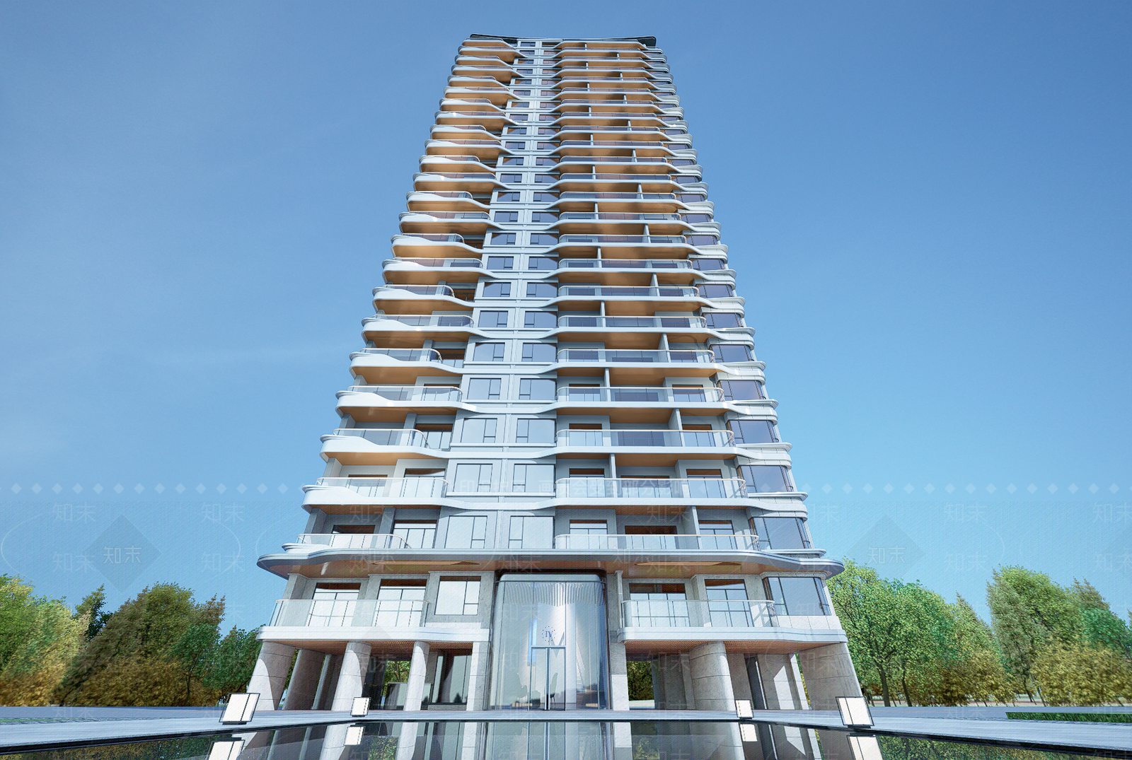 - 现代简约高层住宅 现代高档住宅楼 高层住宅 高品质住宅 轻奢金属感住宅 流线曲面
