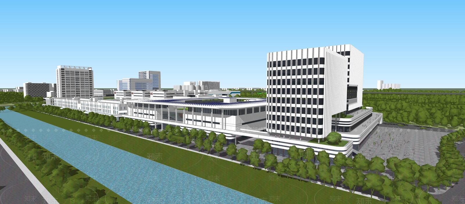 - 未来主义鸟瞰规划 现代风格展馆 展览馆 酒店 商业综合体
