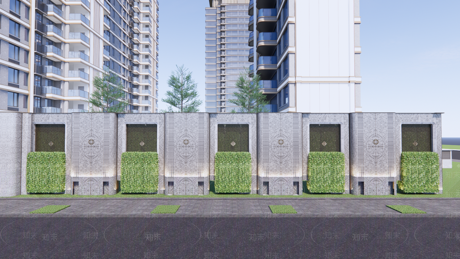 - 新中式景墙 新中式陶罐假山 假山庭院景墙 绿植院落庭院景观 民宿建筑山墙面 民宿花园景观