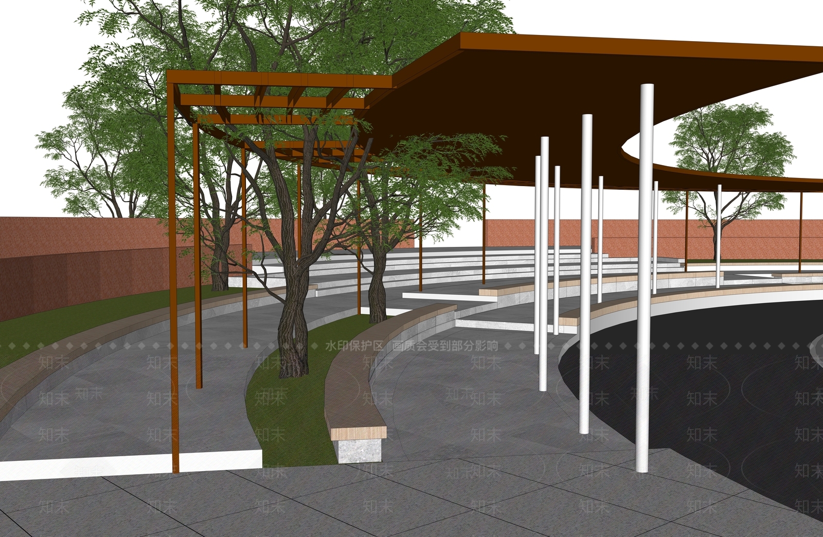 新中式现代廊架 圆形 半圆形廊架 格栅廊架 弧形廊架 长廊 休闲廊架
